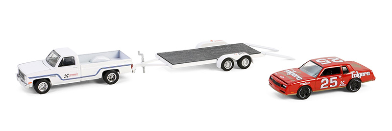 CHEVROLET C30 Custom Deluxe 1986 mit Autotür und CHEVROLET Monte Carlo SS #25 in Blisterverpackung aus der Serie HITCH & TOW