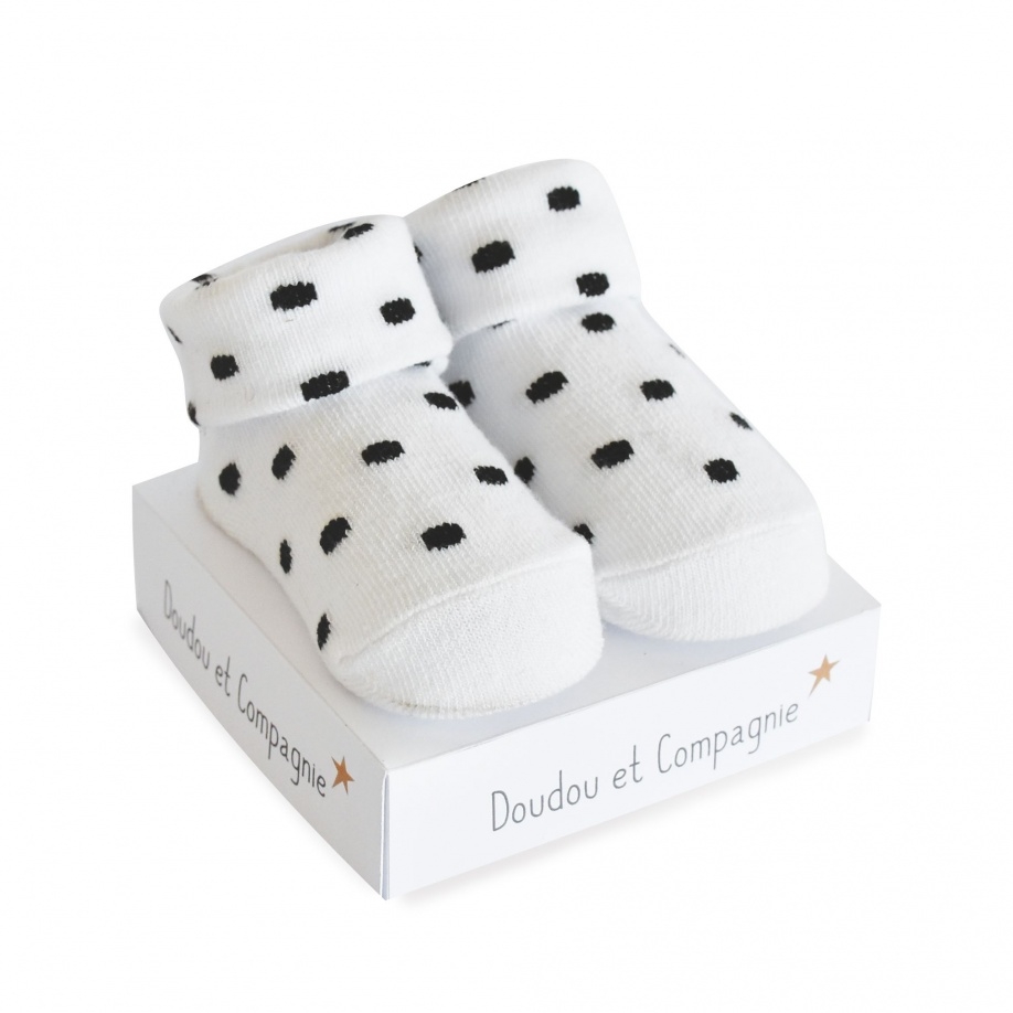 Geburtssocken - Weiß mit schwarzen Tupfen