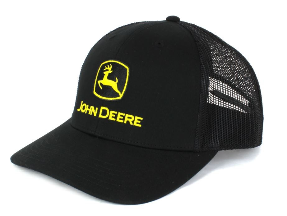 Gorra negra JOHN DEERE con parte trasera de malla.