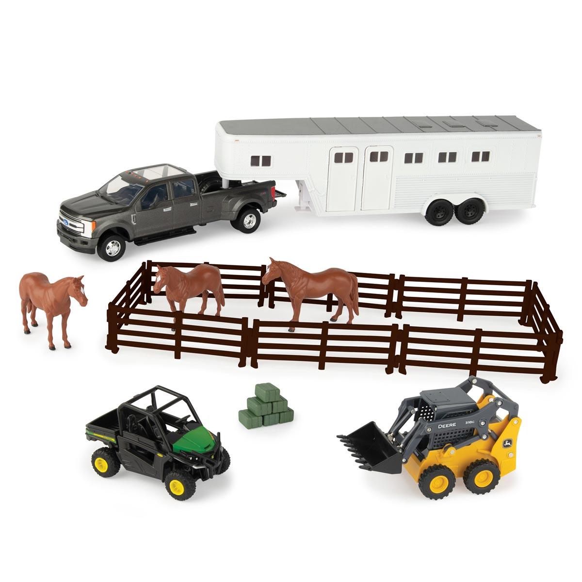 JOHN DEERE Farmfahrzeug-Set mit 3 Pferden