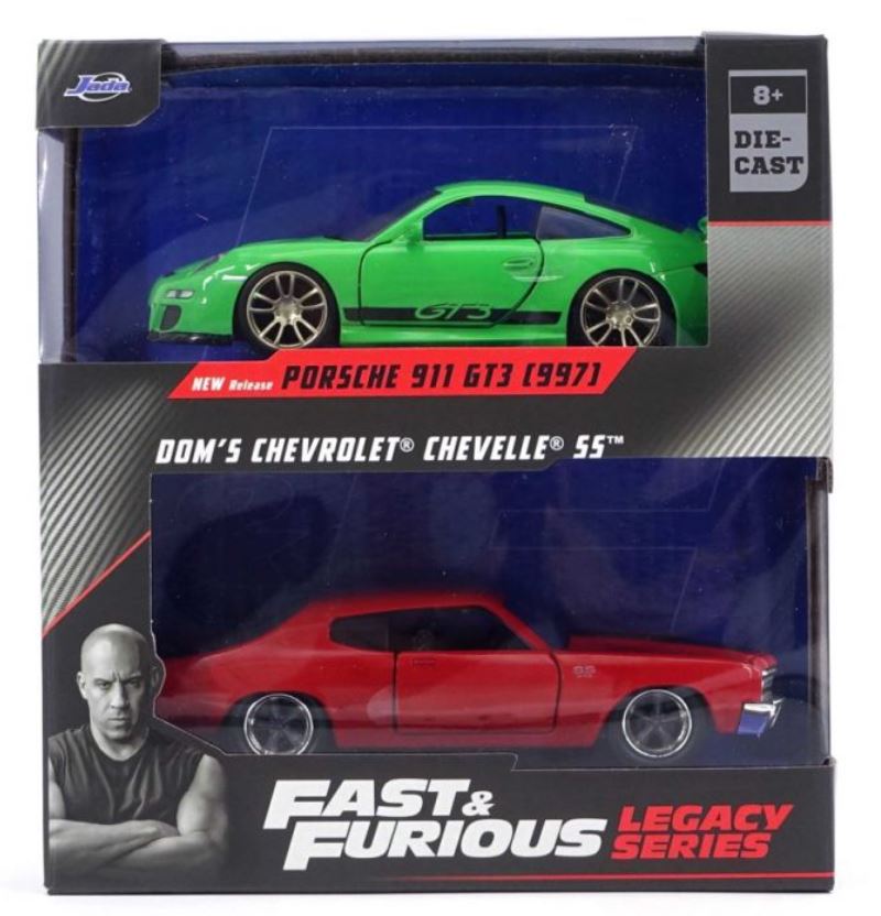 Twin Pack - PORSCHE 911 GT3 RS grün mit CHEVROLET Chevelle rot - FAST and FURIOUS